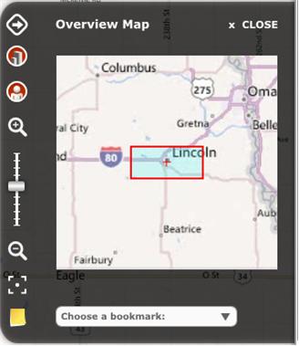 Bookmarks are available from the drop down list below the overview map, and are configured by the Administrators or Designers.