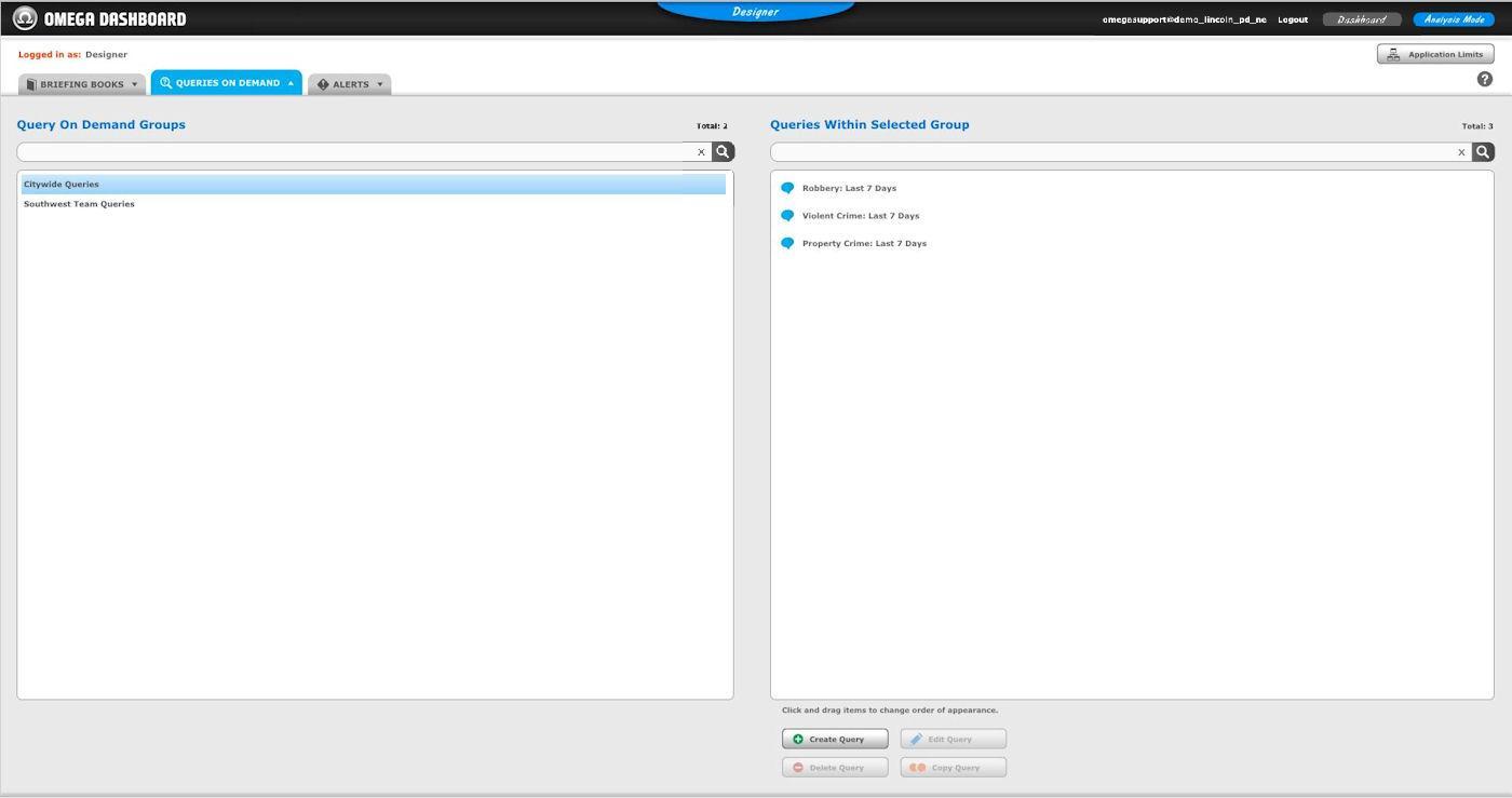 Administrators and Designers can both Create Queries on Demand, Copy Queries on Demand, Edit Queries on Demand and Delete Queries on Demand.